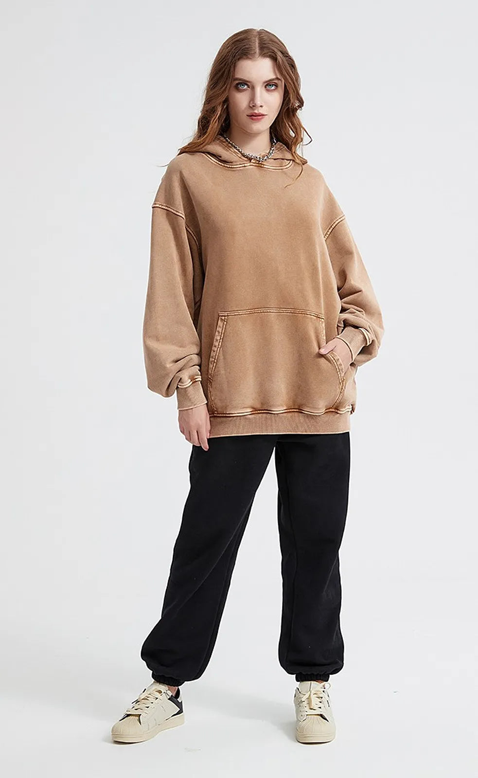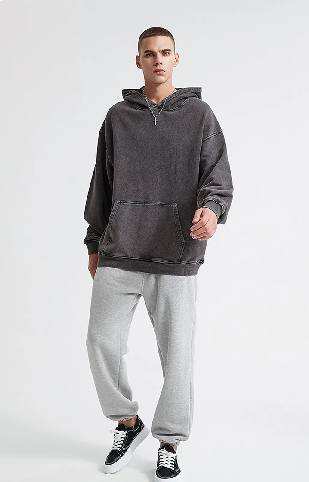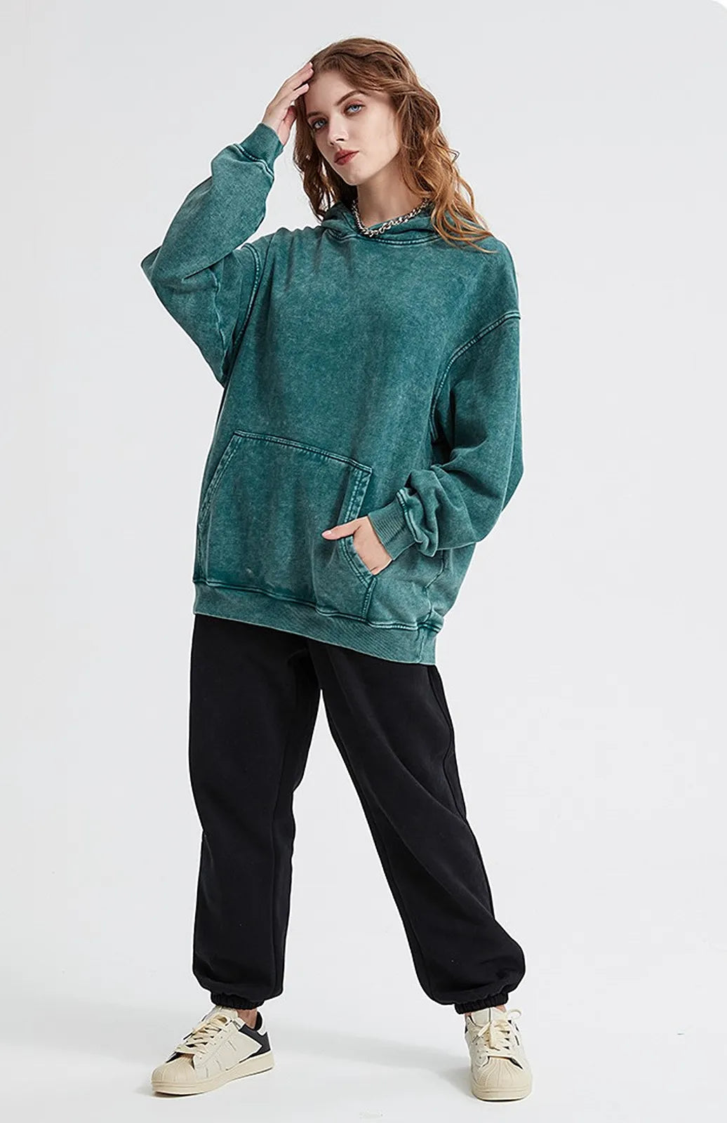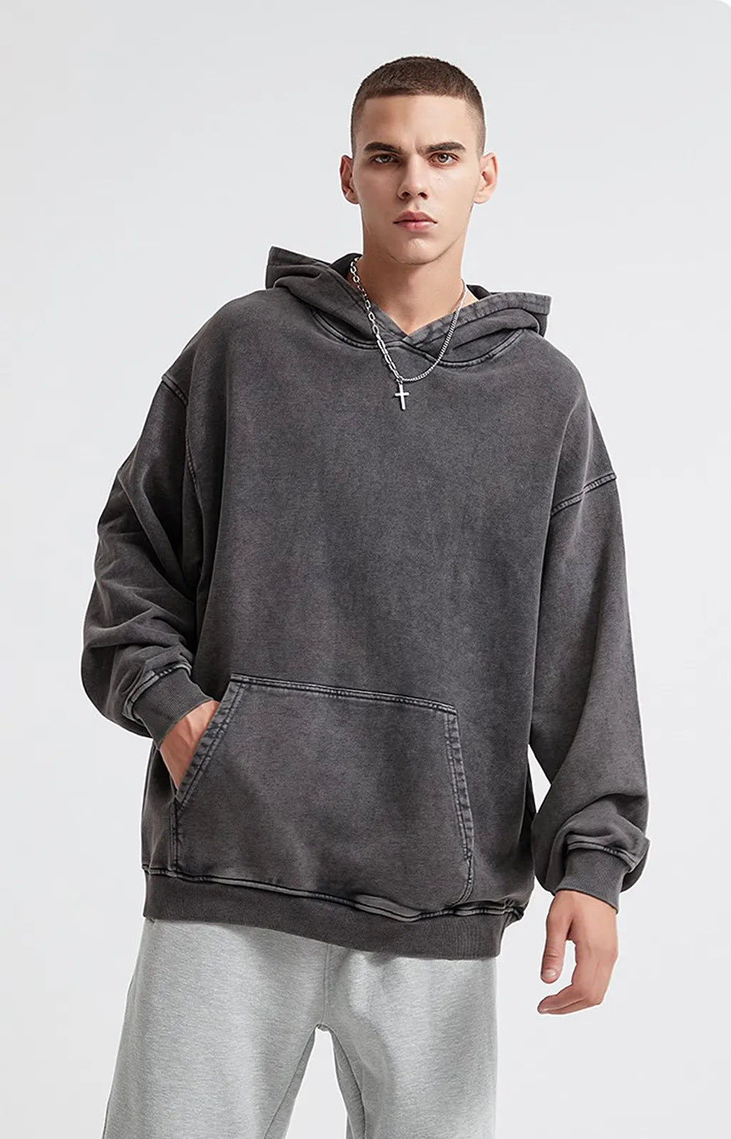 Oversized hoodie with a washed, lived-in look and heavyweight comfort. Made from 100% cotton (420gsm) for a premium vintage feel.